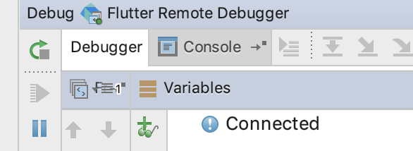 f.成功后可以看到Debugger显示Connected(如果没有显示,再点击一次绿色的调试按钮️)