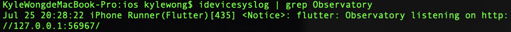 可以看到iOS设备上Observatory启动了一个xxxx的端口(端口号随机)。