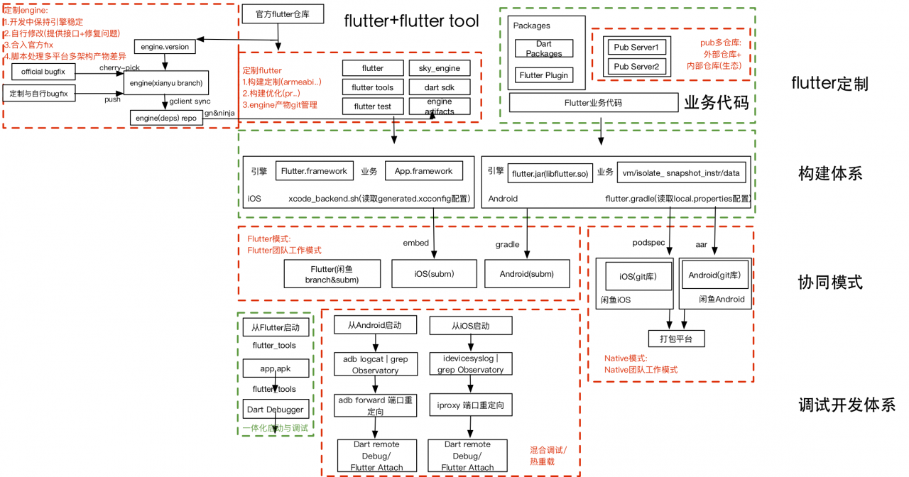 已有的Native工程如何引入Flutter,工程结构如何组织,如何管理Flutter环境,如何去编译构建,集成打包等。